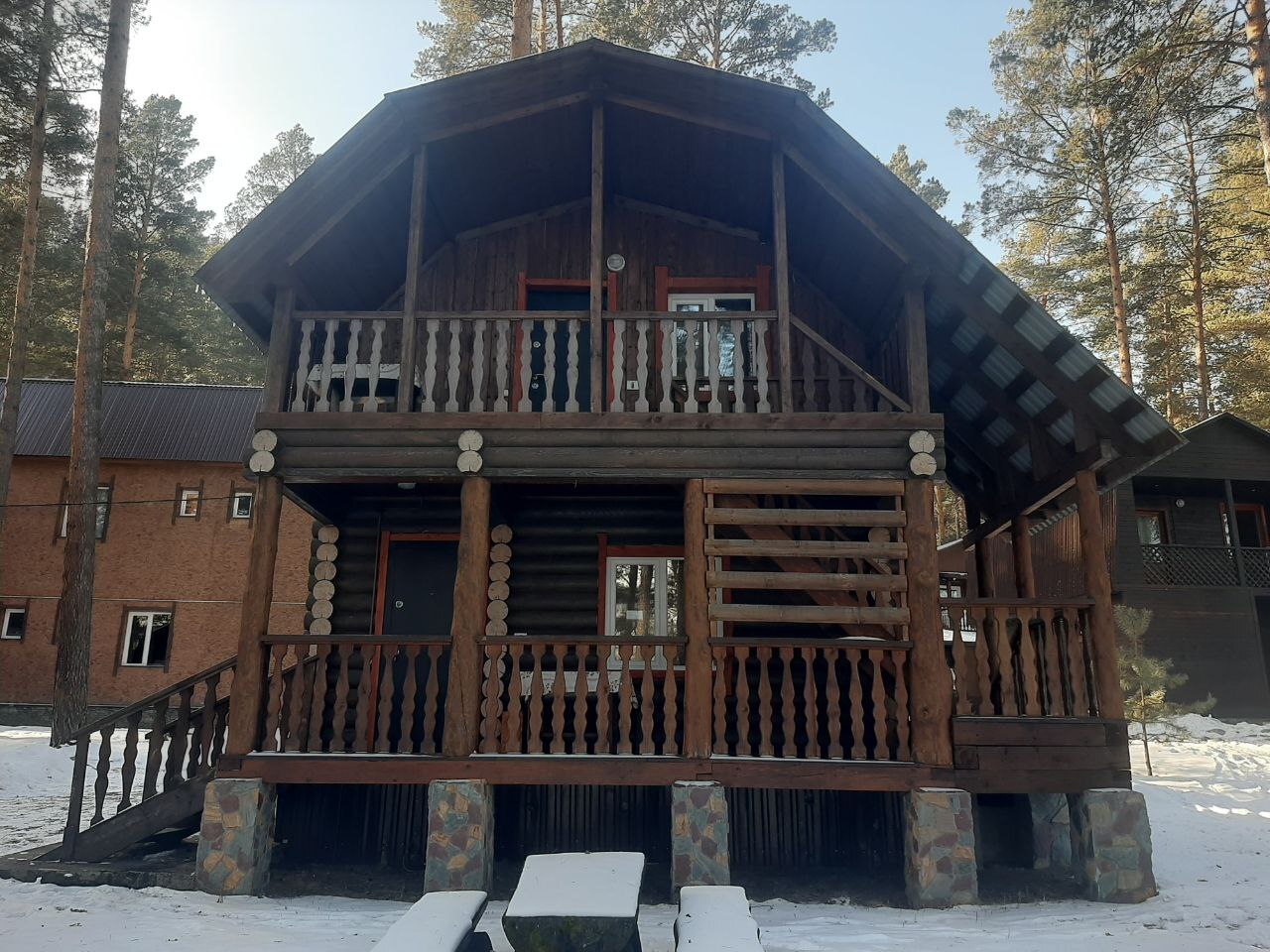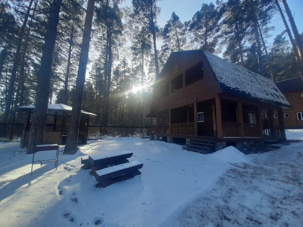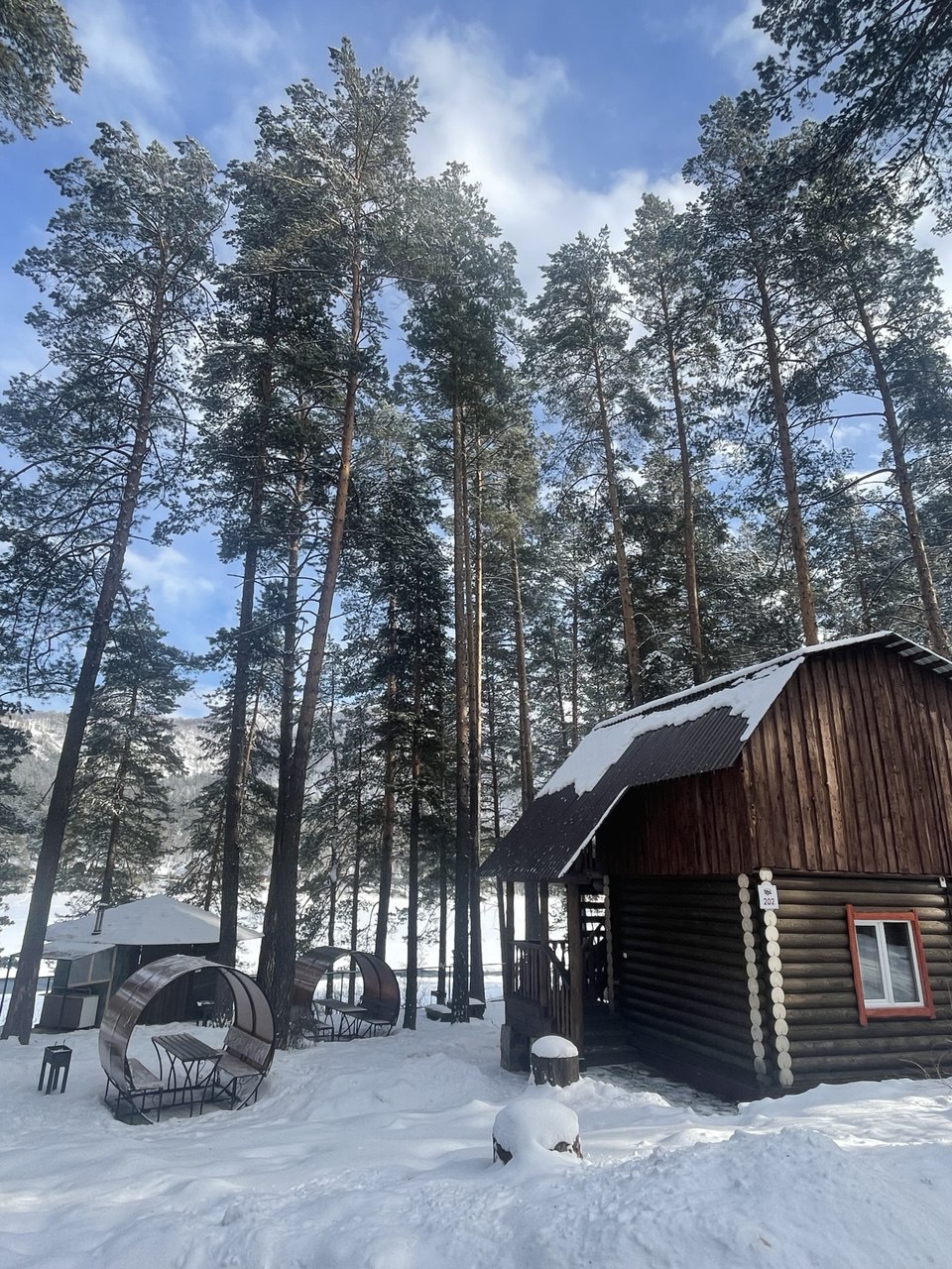 Так же мы работаем в зимний период. Уникальная возможность окунуться в зимнюю сказку на берегу Катуни, у нас не застывает река она парит. Так же Вас ждет панорамный вид на заснеженные горы. Горно-лыжный курорт Манжеток от нас в 40км.